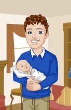 Anyway, I decided to kill a couple o’ minutes and see what damage I could cause. Here’s the likeness I constructed with the basic tools on Yahoo!™. Notice the second one is holding a baby — the variety of available props is dazzling (before any of you send me hate mail for referring to a baby as a “prop,” remember that it’s just make-believe, people).
