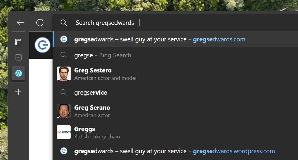 In the latest version of Edge, click the address bar, and then type the name of the site you want to search. If you’ve visited the site a few times before, then Edge will autocomplete the URL after the first few letters.